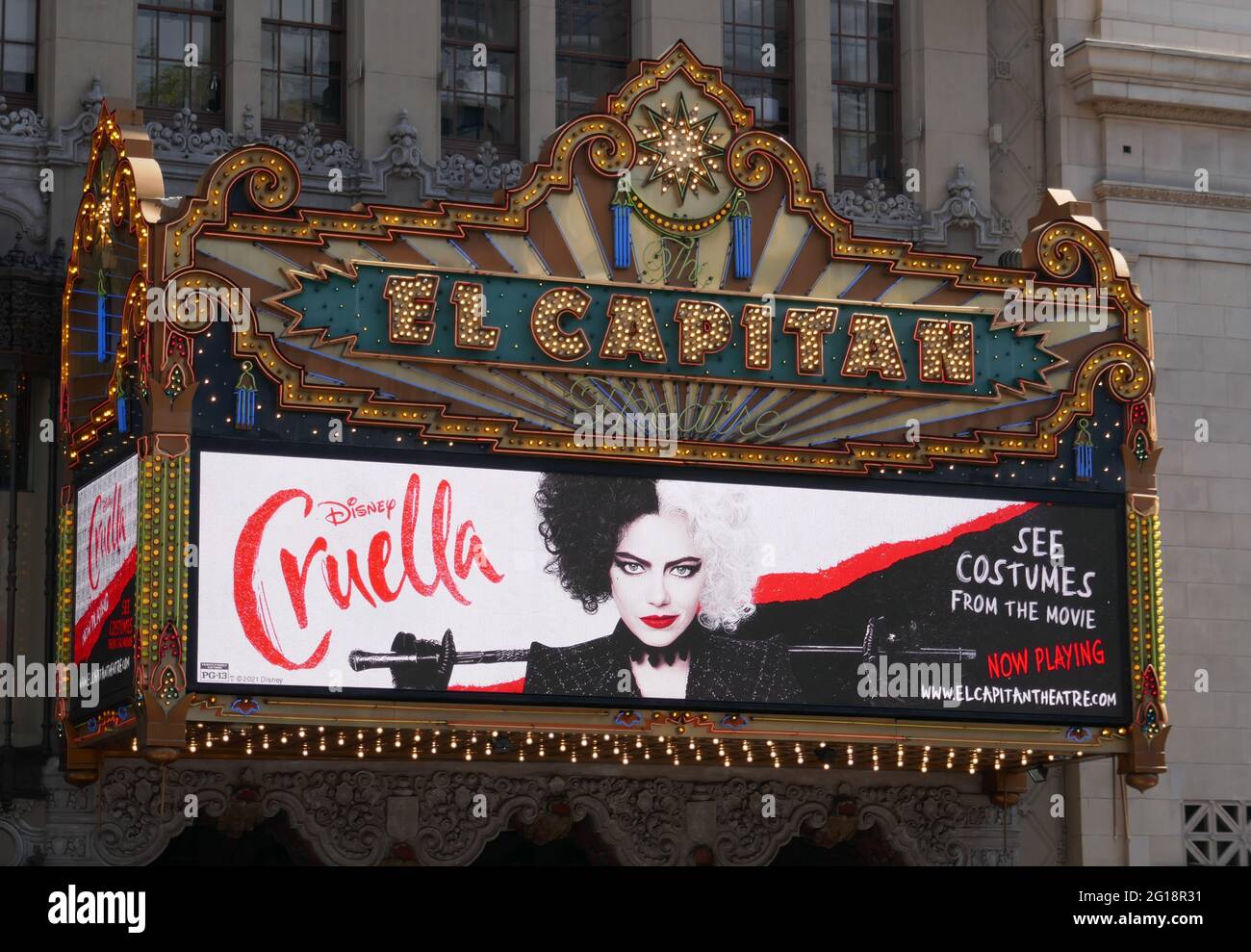 Los Angeles California Usa 4th June 2021 A General View Of Atmosphere Of El Capitan Theatre Cruella Marquee During Coronavirus Covid 19 Pandemic On June 4 2021 In Los Angeles California Usa Photo